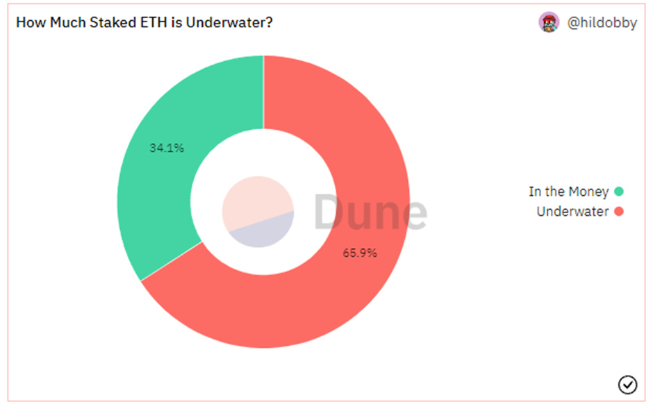 1) Most people who have staked ETH so far are holding underwater positions.