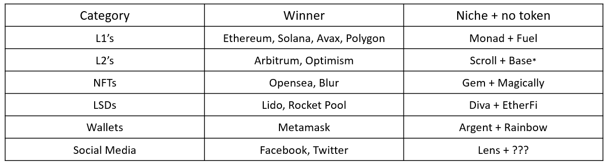 *Whilst Base is not niche from a brand recognition point of view, it is niche in the sense that most people believe it will never have a token.