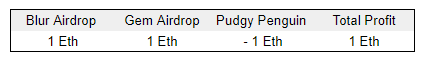 Despite you being dumb and making a bad trade on the Pudgy Penguin, because of the steps carried out above, you were saved by the kindness of the win-win incentives this industry enables and were able to flee with a 1 eth profit.