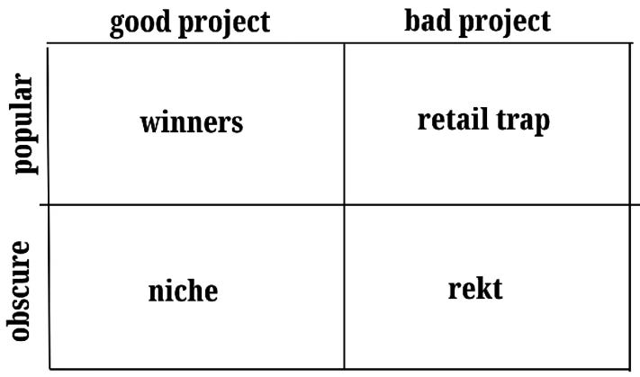 It's also essential to be able to determine which projects are in the obscure and rekt bucket, this will save you a lot of time and energy.